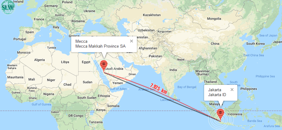 Dari Kota Mekah jika ditarik sejauh lebih kurang 600 km maka Anda akan menjumpai Kota populer lainnya, yaitu Madinah. Sementara itu jika diukur jarak dari Indonesia, kurang lebih kurang lebih sejauh 7.925 KM. Untuk dapat sampai ke kota ini, Anda harus menempuh perjalanan menggunakan pesawat dengan penerbangan kurang lebih selama 17.15 jam, atau bahkan sampai 24 jam dengan 2 kali transit.