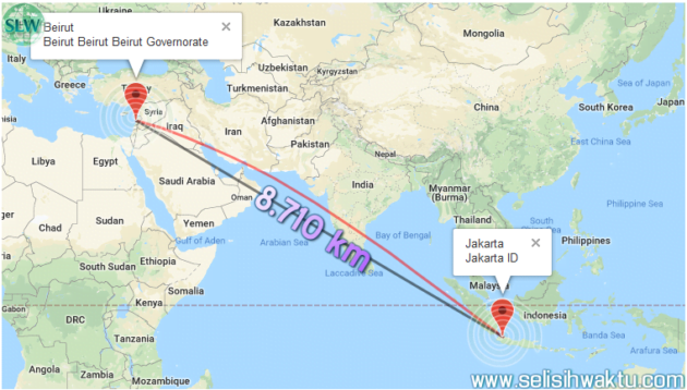 Contoh : jika di Daerah Khusus Ibukota Jakarta saat ini pukul 00.00 (12 malam), maka di Lebanon masih pukul 20.00 (8 malam) pada hari yang sama. Jadi, perbedaan waktu antara Indonesia dan Lebanon hanya 4 jam saja sama dengan Selisih Waktu Indonesia Dengan Mekah.